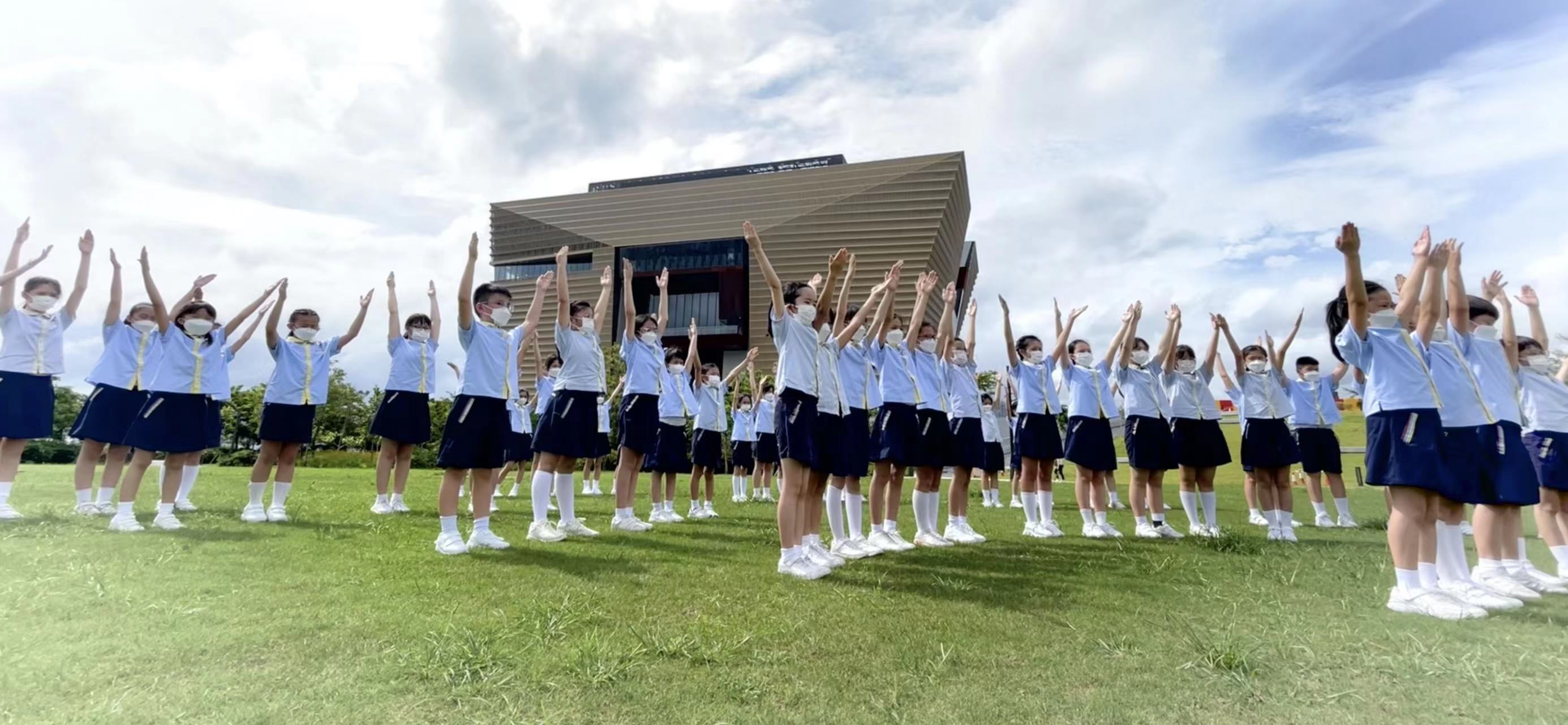 香港培道小学合唱团在香港故宫文化博物馆前合影
