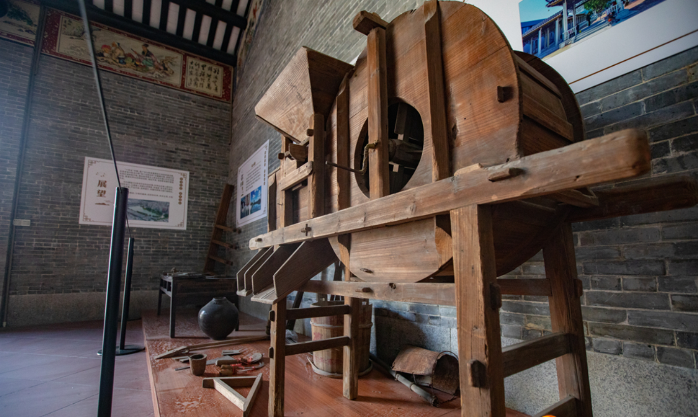 “像缝纫机、收音机属于‘四大件’之一,是科甲水上世纪80年代常见的家庭物品。而这台农机是用来吹走稻谷的谷壳的。”一台旧式手摇风谷机,让年近七旬的陈姨感慨万千,“对比以前,很难想象能有今天这样舒适的退休生活,我真是很知足了。”