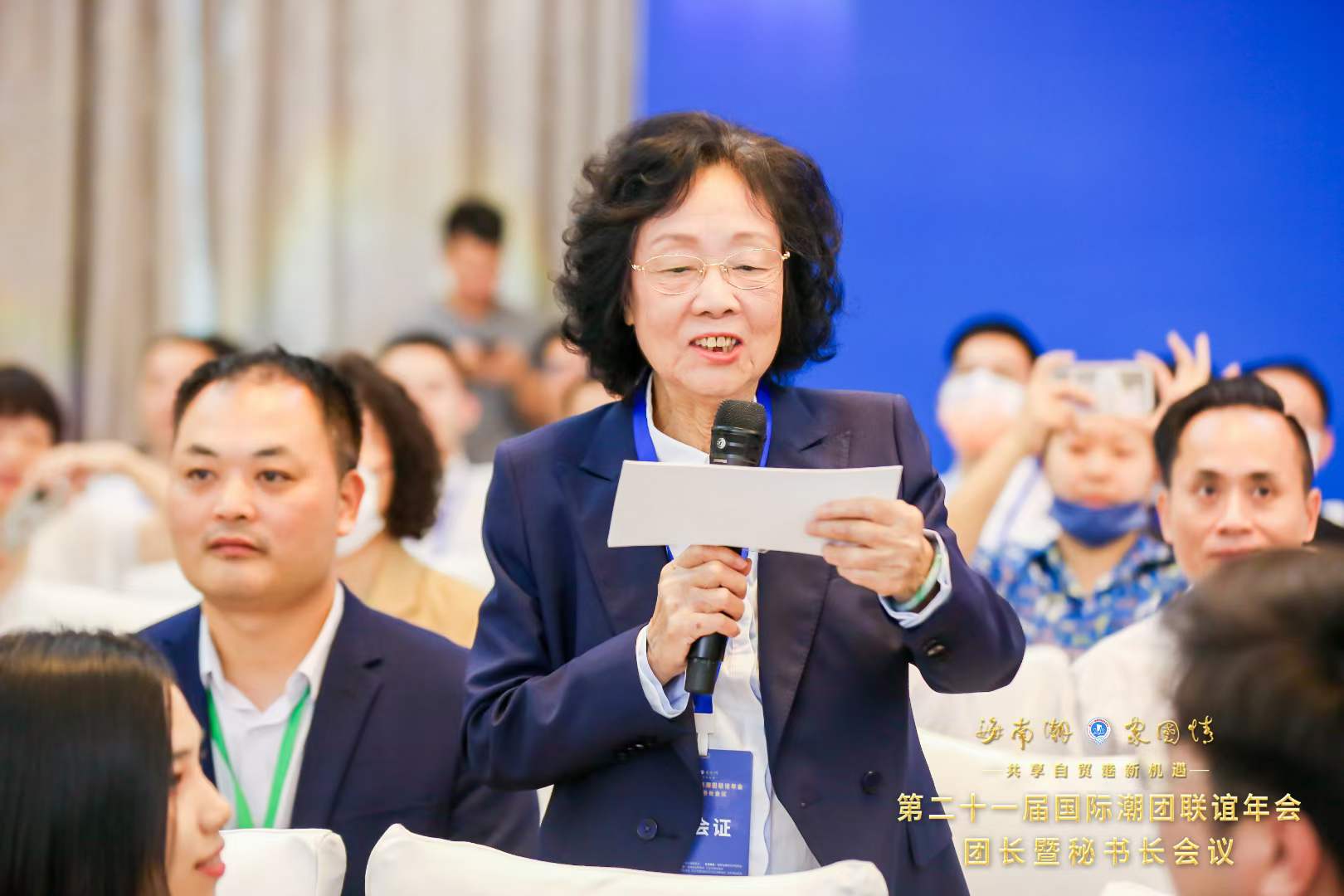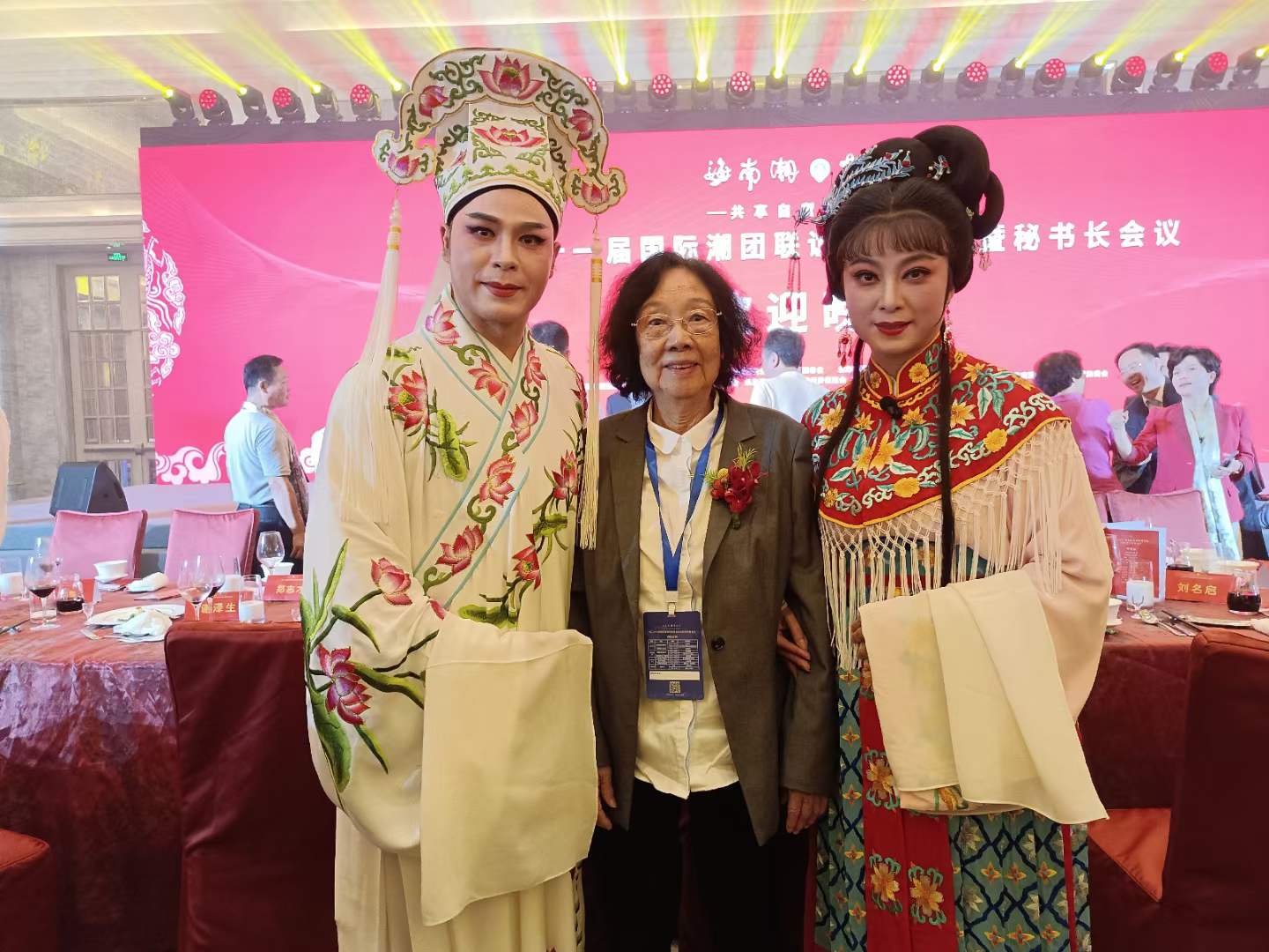 在第二十一届国际潮团联谊年会上发言(资料图片)姚璇秋一生为潮剧发展、弘扬与传承做出了杰出贡献,临走前几天还在为潮剧发展奔波。6月26日,在海南省海口市召开的第二十一届国际潮团联谊年会团长暨秘书长会议上,汕头市成功获得2024年第二十二届国际潮团联谊年会的主办权。会上,潮剧国家级传承人姚璇秋作为来自汕头各行业的杰出代表,向广大海内外乡亲发出到汕头参加第二十二届国际潮团联谊年会的“2024之约”。
