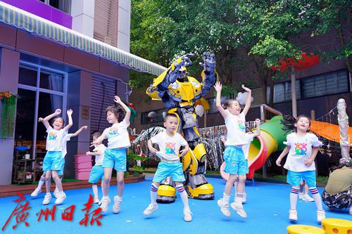 7月1日,广州市黄埔区香雪山幼儿园举行2022届大班毕业典礼,当天上午,幼儿园被装扮成浩瀚宇宙,老师们创设各种太空情景游戏,孩子们化身小小宇航员,一路闯关,以别样的方式了解“东方红一号”、“神州五号”、“神州七号”、“嫦娥四号”、“天问一号”、“神州十四号”等中国航空航天里程碑事件。在毕业班晚会的开场秀中,酷炫机甲“大黄蜂”迈着太空舞步,跳着机器舞,向孩子们款款走来,它通过八音盒技术发出的滑稽机械声逗得孩子们捧腹大笑。