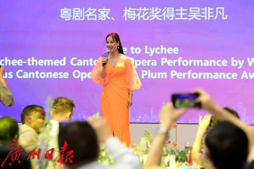 进入活动尾声,粤剧名家、梅花奖得主吴非凡也在现场为中外嘉宾演唱了粤剧名曲《荔枝颂》《此心安处是吾乡》等作品。