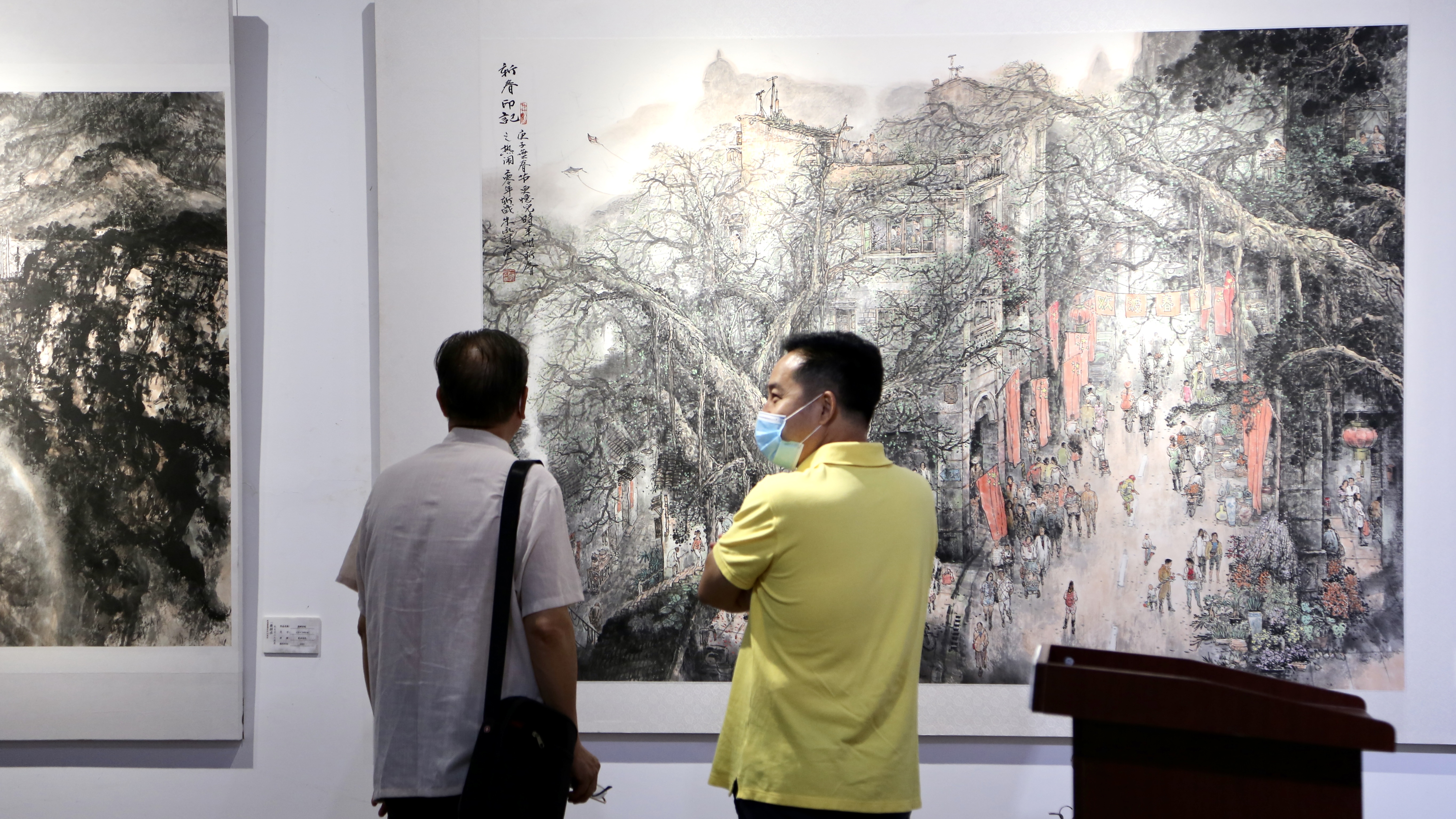在高剑父纪念馆馆长李琰看来,“烟火气”是朱永成笔下的城市山水画的独到之处,他将现代都市景象和传统山水的山川草木融汇在一起,用传统的笔墨语言讲述现代都市故事,“他的作品笔墨中所蕴含的是对历史沧桑的知觉体悟,对民族品格的纵情讴歌,所呈现的是自我的精神家园,这种为民族责任感所支撑的社会意识和文化自觉,正是岭南画派家国精神的核心所在。”