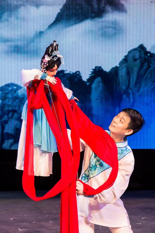 杖头木偶长绸舞《花·月·韵》则以广东省木偶艺术剧院经典节目长绸舞《人偶情》为基础,改编出另一段人和偶的情感故事。现场,观众仿佛置身于上元佳节,被眼前才子佳人的痴心和真挚的情感深深打动。