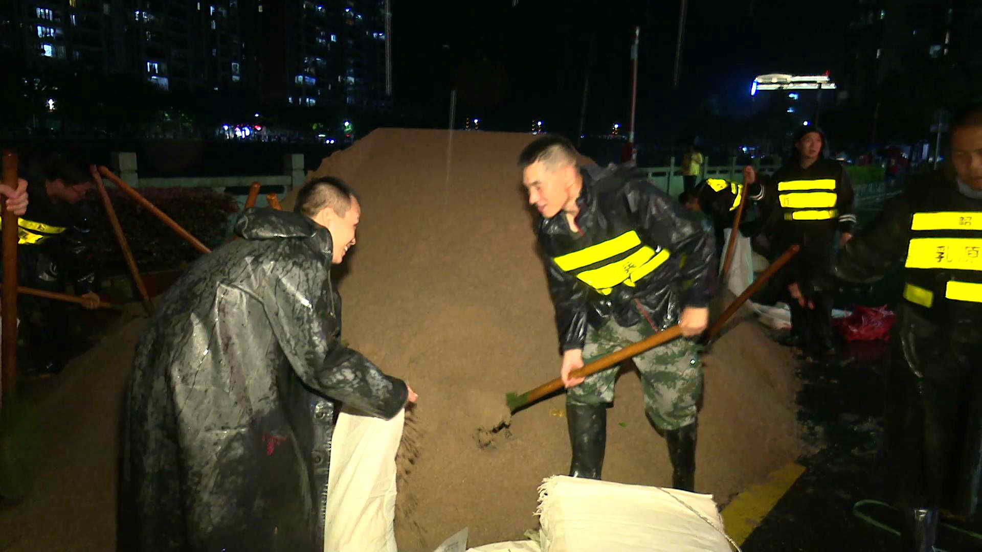 7月3日晚,地处南水水库下游的乳源瑶族自治县党员干群、志愿者等各方力量关键时刻坚守一线,以实际行动筑牢泄洪安全防线。该县共出动300多人,调用70000个编织袋,耗时3个小时,迅速在河堤两岸搭建起了600米的沙包长堤。