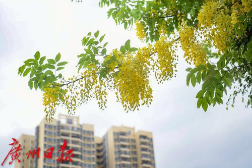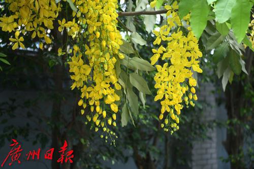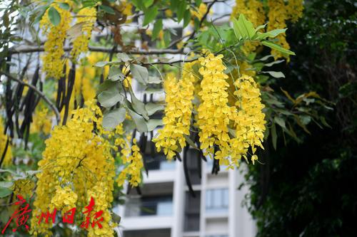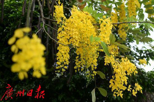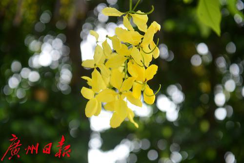 图为腊肠树开花,俨然下起了“黄金雨”。
