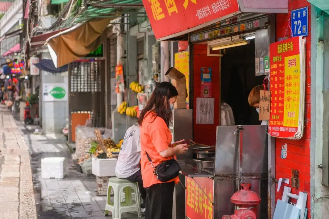 如今,记者已不曾见到有售卖麻织品的商铺了。市民陈女士是居住在附近的居民,她说卖麻街很有市井气息,“因为就在地铁口,交通方便,而且街巷内的食肆出品好吃且实惠,每到饭点时就有很多人到此落座享用美食。”