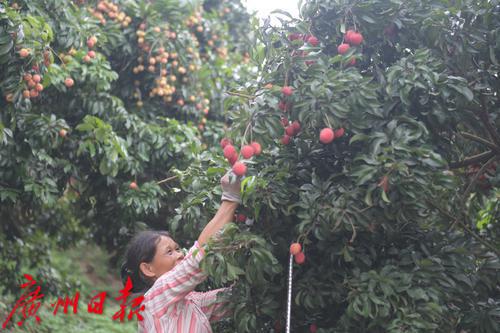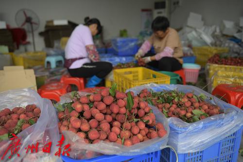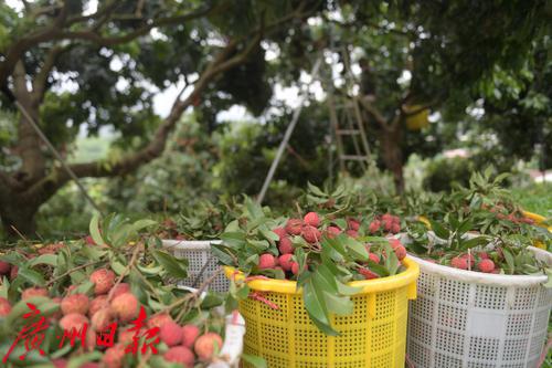 仙进奉荔枝现代农业产业园以广州市仙基农业发展有限公司为牵头实施主体,公司负责人、仙进奉荔枝种植带头人陈浩潮告诉记者:“今年增城的仙进奉荔枝预计比去年增产50%左右,已进入大量上市阶段。今年果树的开花期较去年迟了半个月左右,上市期也相继推迟,预计在6月25日至7月25日,仙进奉品种目前已经销售了总产量的三分之一。”