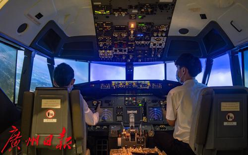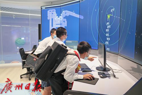 三位同学模拟地面管制员,观看大气数据惯性基准系统和雷达显示器