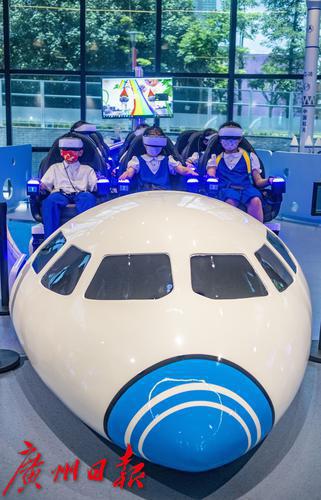 小朋友们在童翔蓝天馆体验VR遨游太空