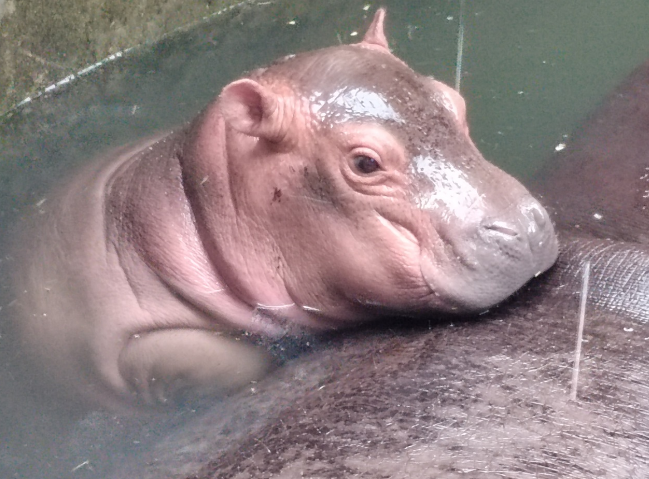 吃饭、练习两不误!广州动物园小河马“七仔”被拍到水中喝奶场面