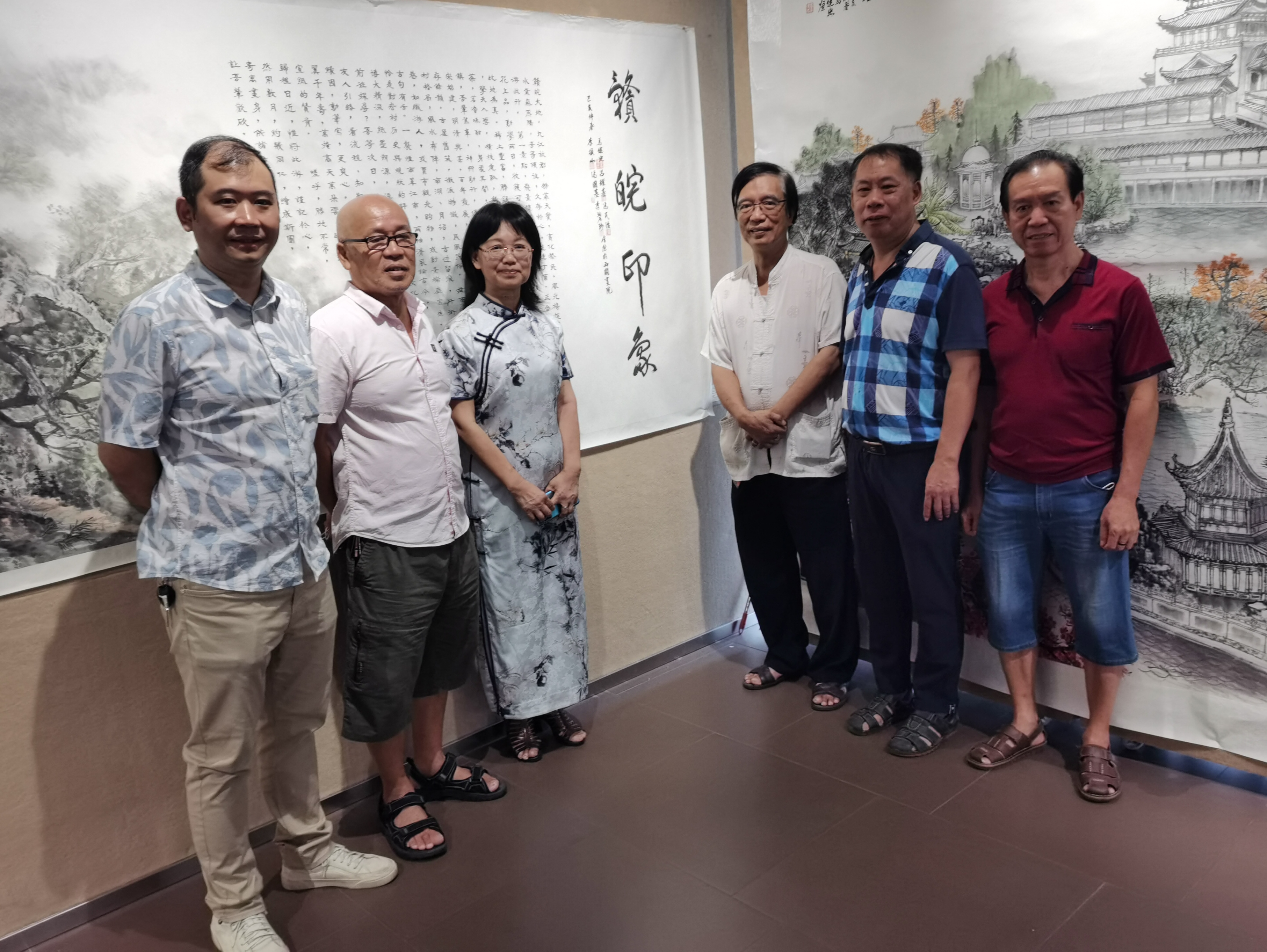 六名作者在《赣皖印象》前合影