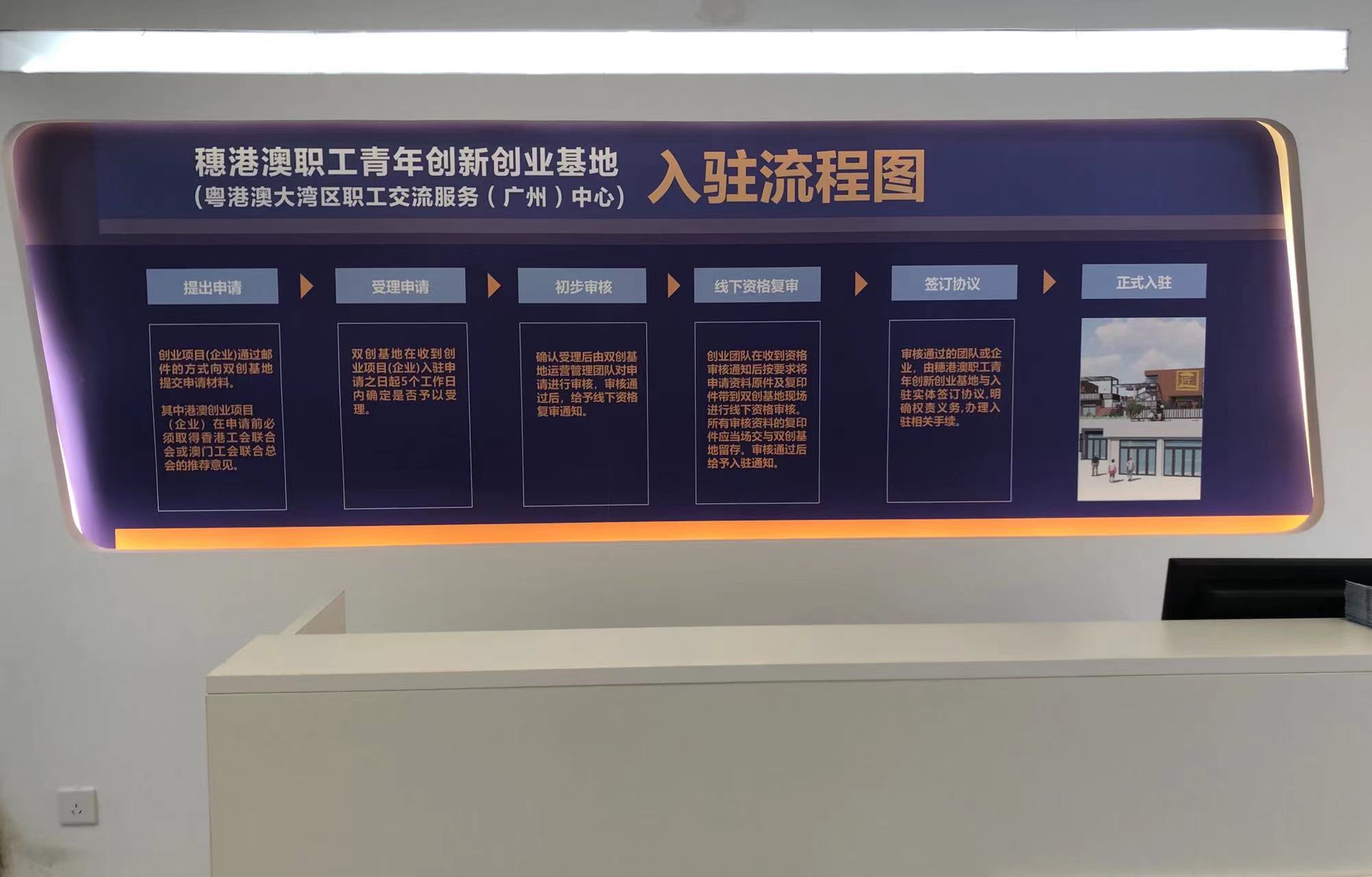 穗港澳職工青年創新創業基地設置在廣州員村工人文化宮,聚焦「文化、創意」產業,由廣州市總工會聯合香港工會聯合會、澳門工會聯合總會共同打造成為三地工會支持、專業機構參與、市場資源引領的穗港澳職工青年服務平台,面向穗港澳職工青年,優先服務穗港澳職工青年在穗實習就業創業,為初創企業提供創業服務。