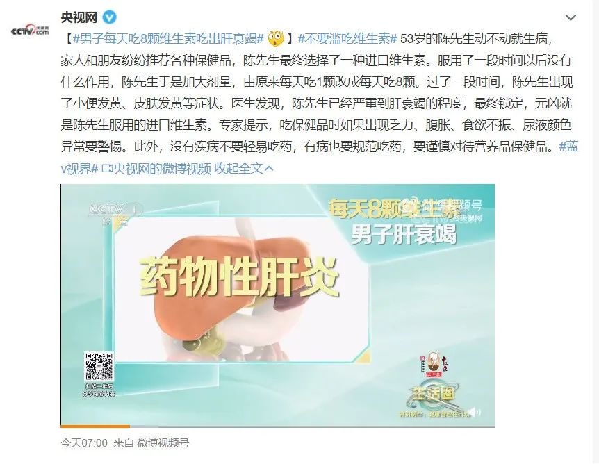 这不,53岁的陈先生就因过量补充维生素导致肝衰竭!