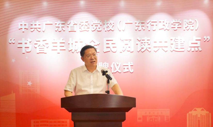 中共广东省委党校(广东行政学院)常务副校(院)长张广宁同志致辞表示:党校是党员领导干部加强学习的主阵地,是教育培训党员领导干部的主渠道,必须在营造浓厚的学习氛围,培育书香干部中承担重要责任。“书香羊城”是广州城市文化的一张亮丽的名片,聚合了羊城书展、广州读书月等全民阅读盛会,做出了经验,做出了效应,做出了品牌。这次我们携手建设“书香羊城全民阅读共建点”,将充分聚合双方文化资源,不断深化共建共享。