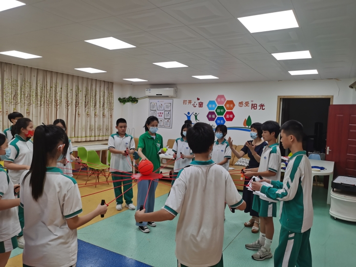 图:驻校社工为学生开展沟通协作服务。