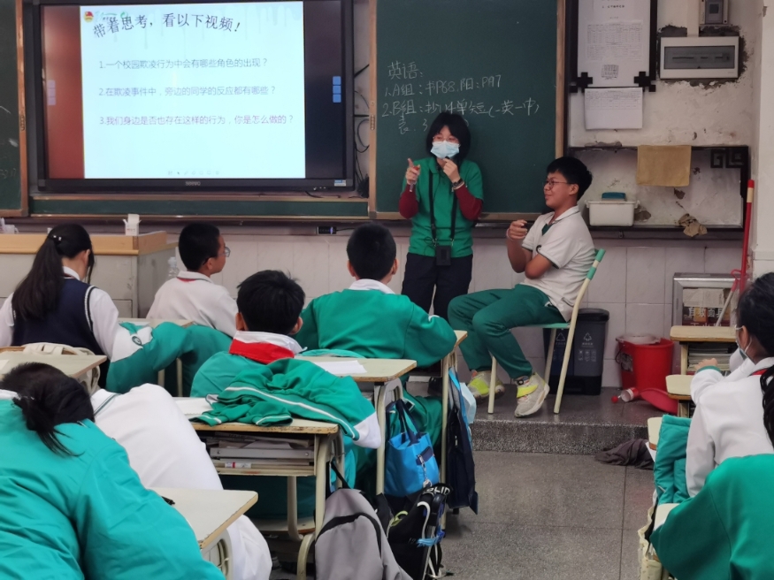 图:驻校社工为学生开展预防校园欺凌主题活动。