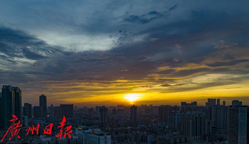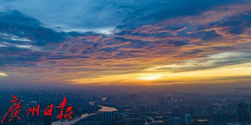 【天气】绚丽晚霞映照广州天空