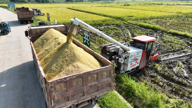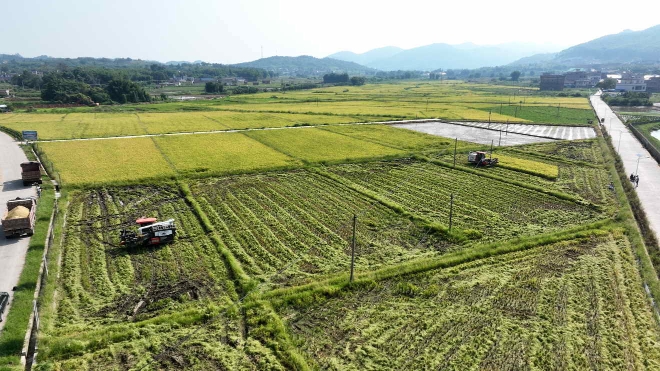 盛夏七月,稻谷金黄,“粤北粮仓”韶关市始兴县的早稻进入收割期,曾经一度遭遇洪水侵袭的部分地区,迎来了让人欣慰的丰收季。随着天气晴好,种粮大户和农户们纷纷抢收抢种,确保颗粒归仓。