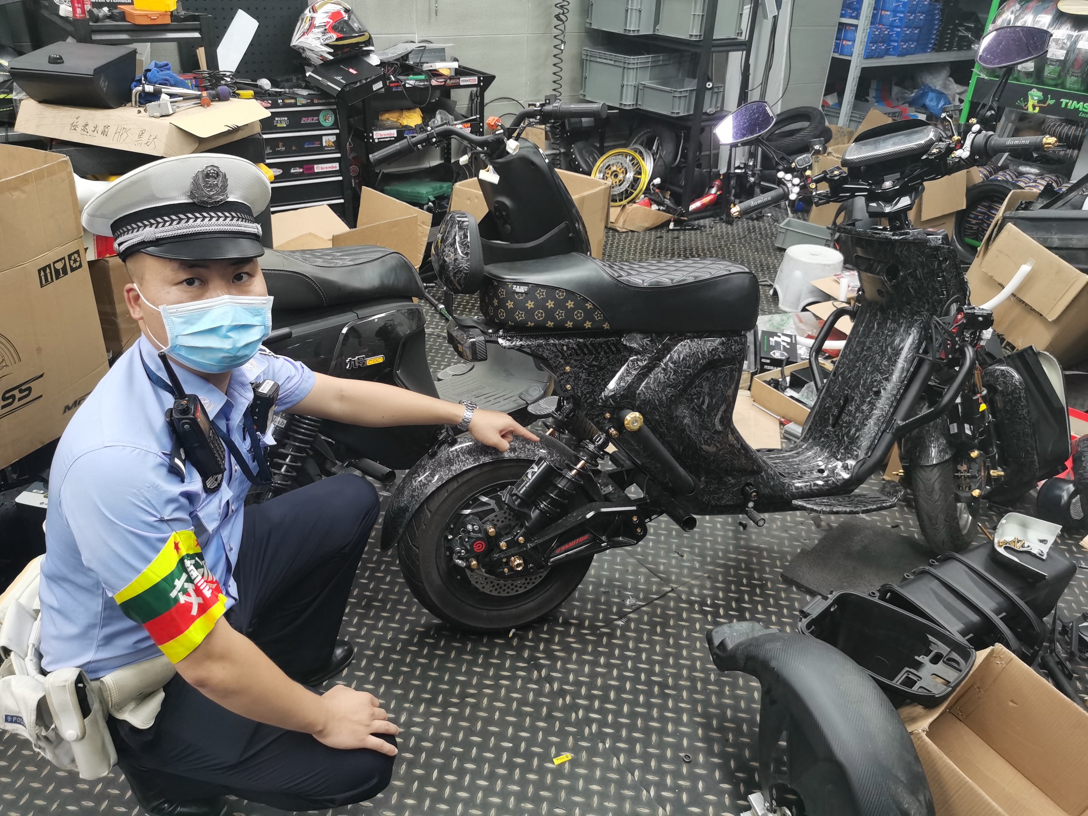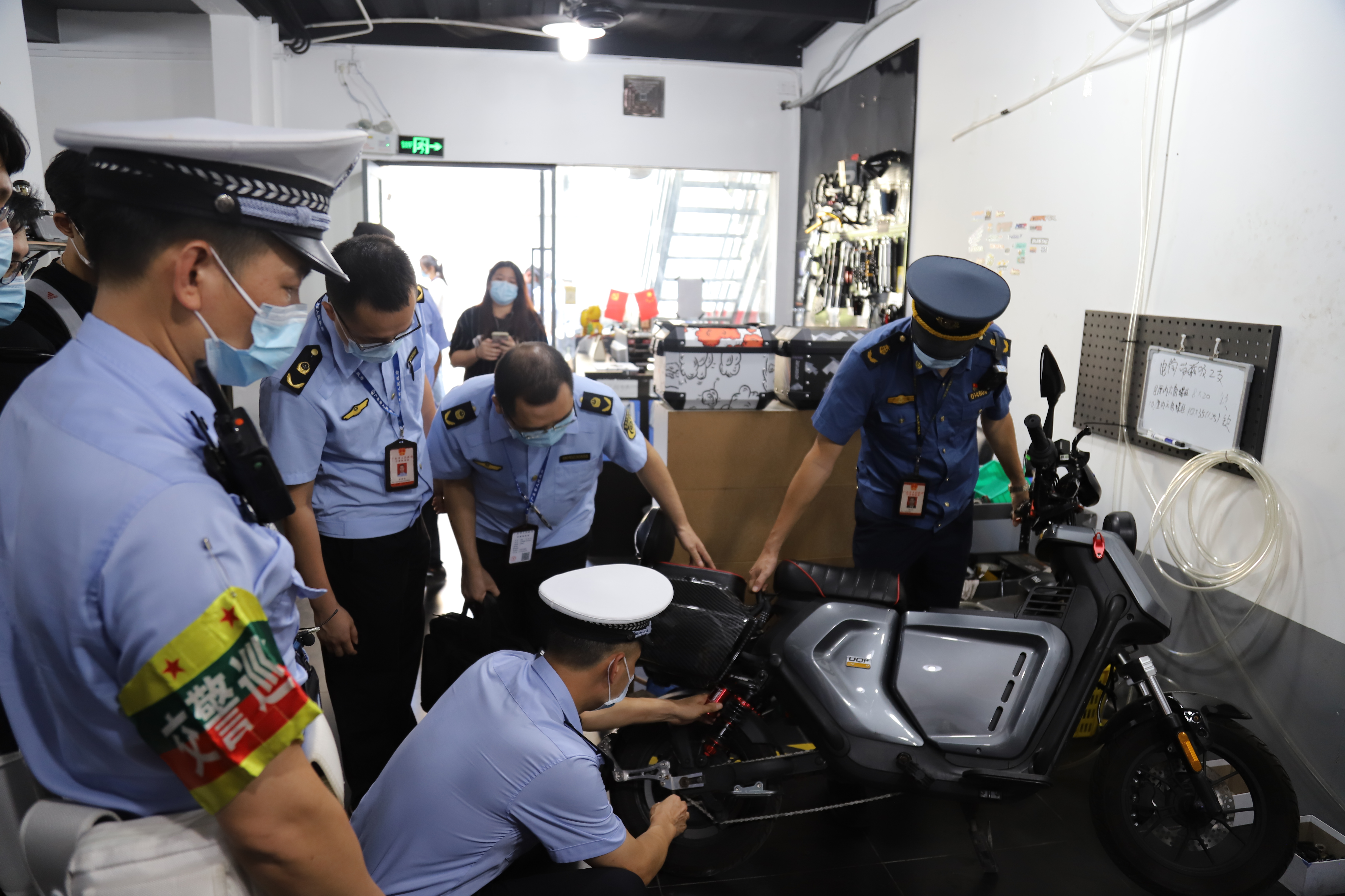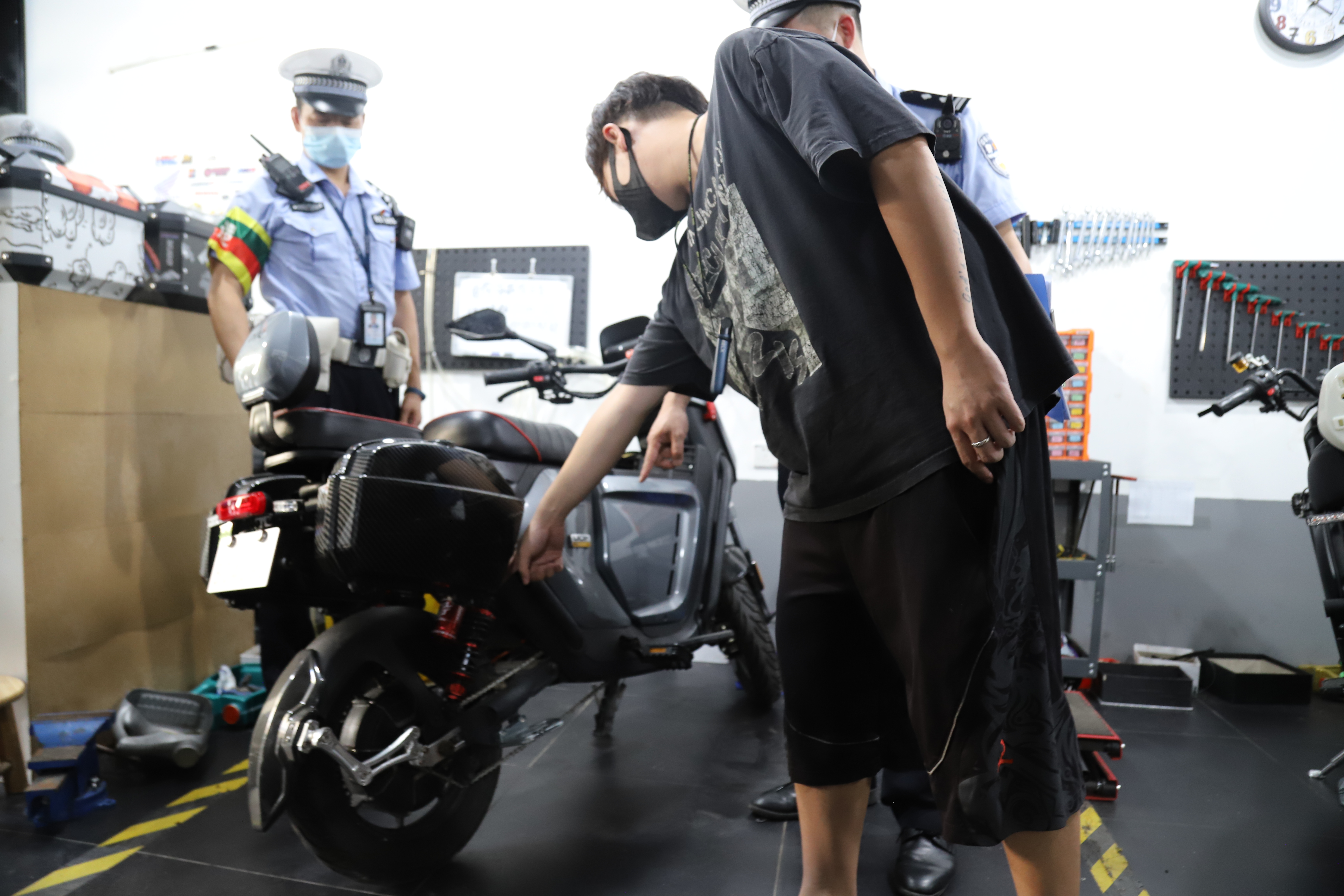 原来,在开展常态打击的基础上,广州“数字交警”专班民警通过大数据平台分析,发现部分电动自行车非法改装地点在海珠区。7月13日下午,广州“数字交警”专班联合市市场监督管理、交通运输部门以及海珠区公安分局,对海珠区的4个涉嫌电动自行车非法改装的窝点进行精准打击。