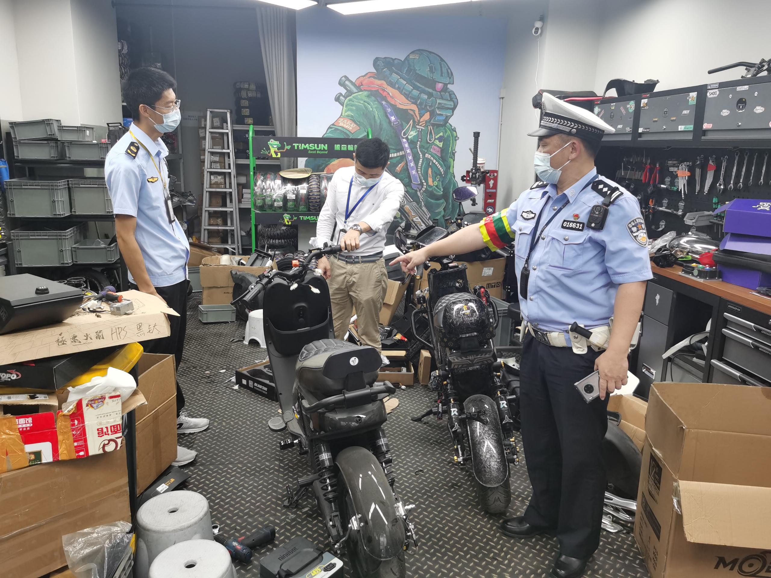 不仅如此,为有效治理电动自行车非法改装乱象,广州交警还会同市市场监管部门通过源头追踪,常态化开展联合执法。7月14日,联合行动组到白云区多个电动自行车销售门店开展联合检查,一共发现6款共22辆电动自行车涉嫌改装、加装等问题。