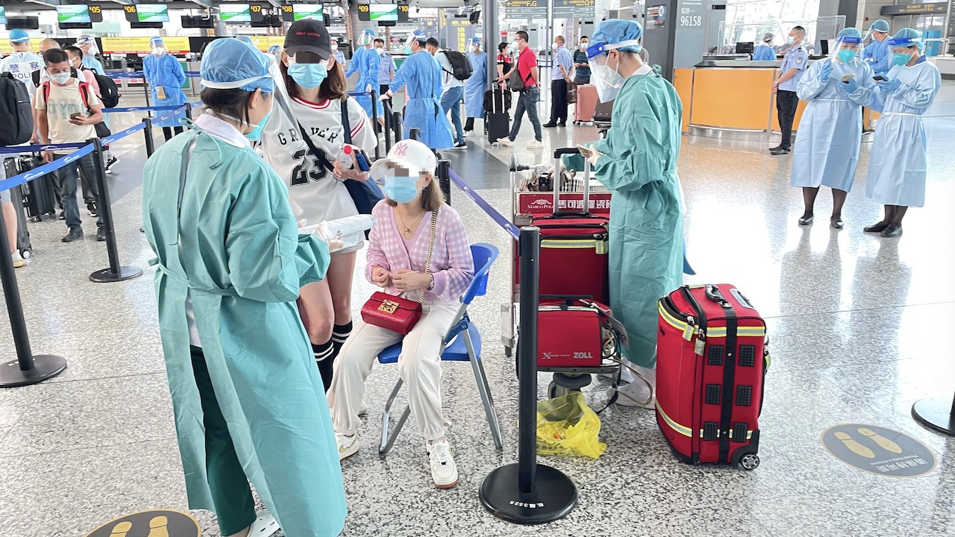 在白云口岸多次紧急救援事件中,屡屡能见到忙碌在一线的移民管理警察身影。6月29日,正参与入境“闭环”勤务的白云边检站执勤七队突然接到一则警情:“航班上有一名旅客疑似突发肾衰竭病症,已全身瘫软、无法起身。”