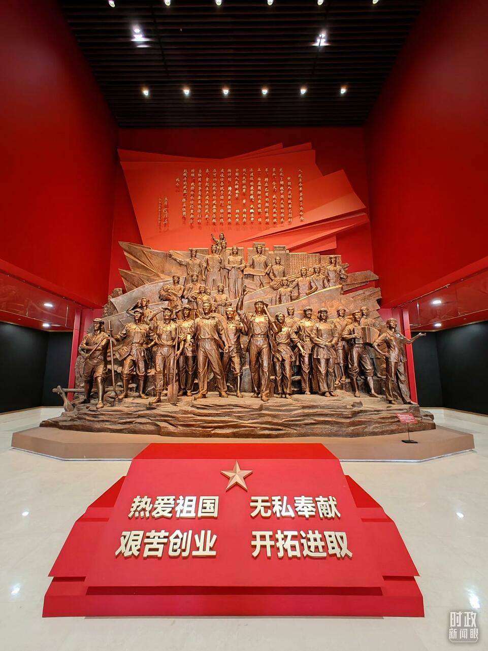 △军垦博物馆内的大型浮雕:《当祖国需要我们的时候》,浮雕上的32个人物是几代兵团人的代表。(总台央视记者彭汉明拍摄)