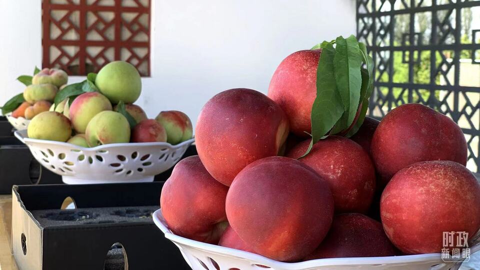 △一四三团九连出产的鲜桃。(总台央视记者段德文拍摄)
