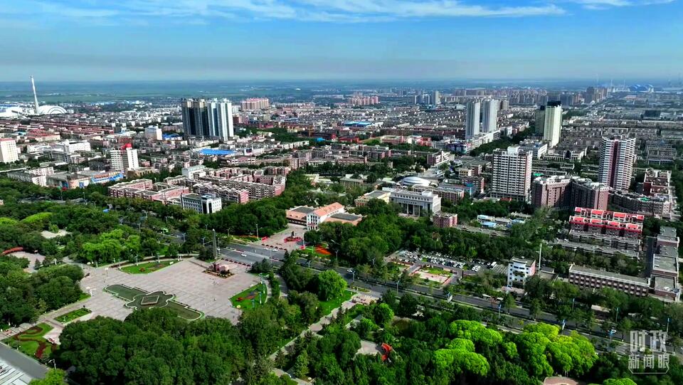 △俯瞰石河子。(总台记者郭培宇拍摄)
