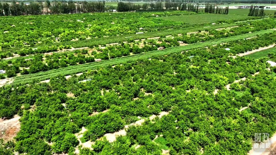 △俯瞰一四三团九连蟠桃种植园。(总台记者郭培宇拍摄)