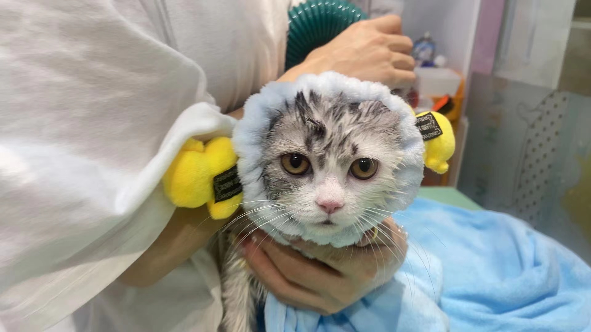 记者还发现,如今毛孩子们洗澡的规格也升级了,可以像主人一样来一次“温泉浴”。在这家宠物店里,工作人员会用一种进口的碳酸️温泉片给毛孩子泡澡。