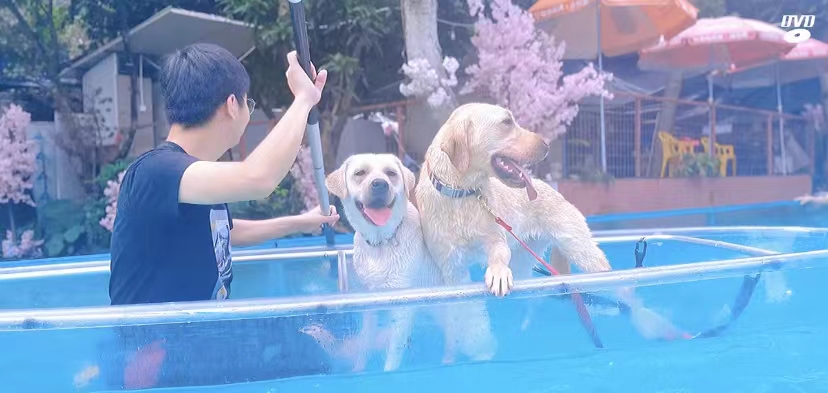 炎炎夏季,不管是主人还是宠物,最消暑的无疑是游泳了。在广州,近年来出现了不少宠物游泳场所。这里不但有专门给毛孩子戏水的池子,还有滑梯等水上游乐设施。