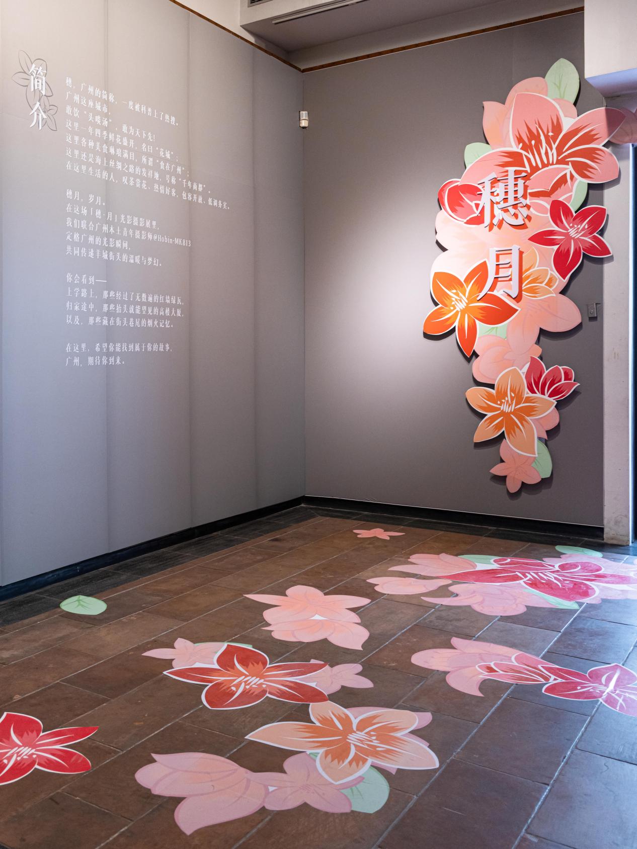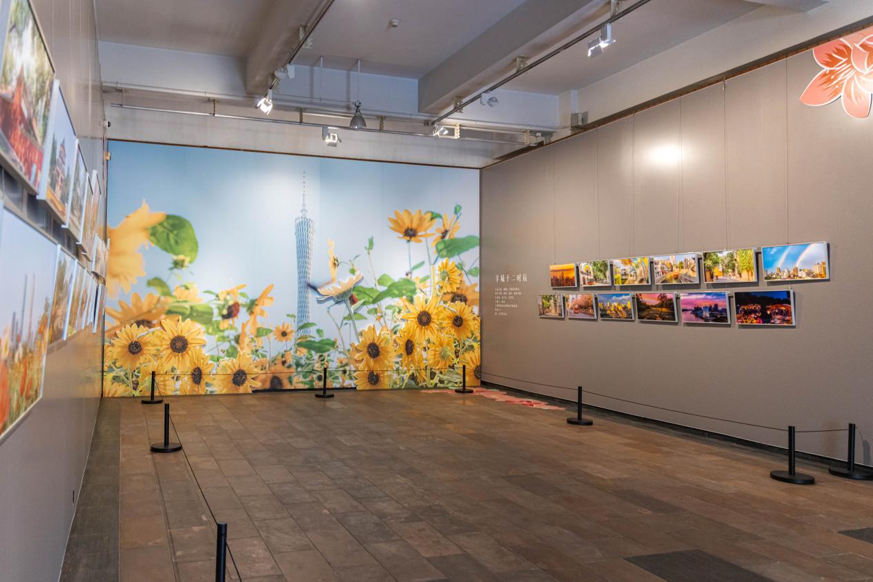“穗·月”城市光影摄影展围绕“羊城四季图鉴”“羊城十二时辰”“西关记忆”“骑楼生活”“花开广州”“羊城烟火”六大主题展现广式幸福生活。展览突出“花城”广州的城市特色,在展厅内外部融入了许多鲜花元素,如墙上层叠绽放木棉花、大幅向日葵落地打卡照,还有海珠湿地3.2公里宫粉紫荆长廊3D立体画等。