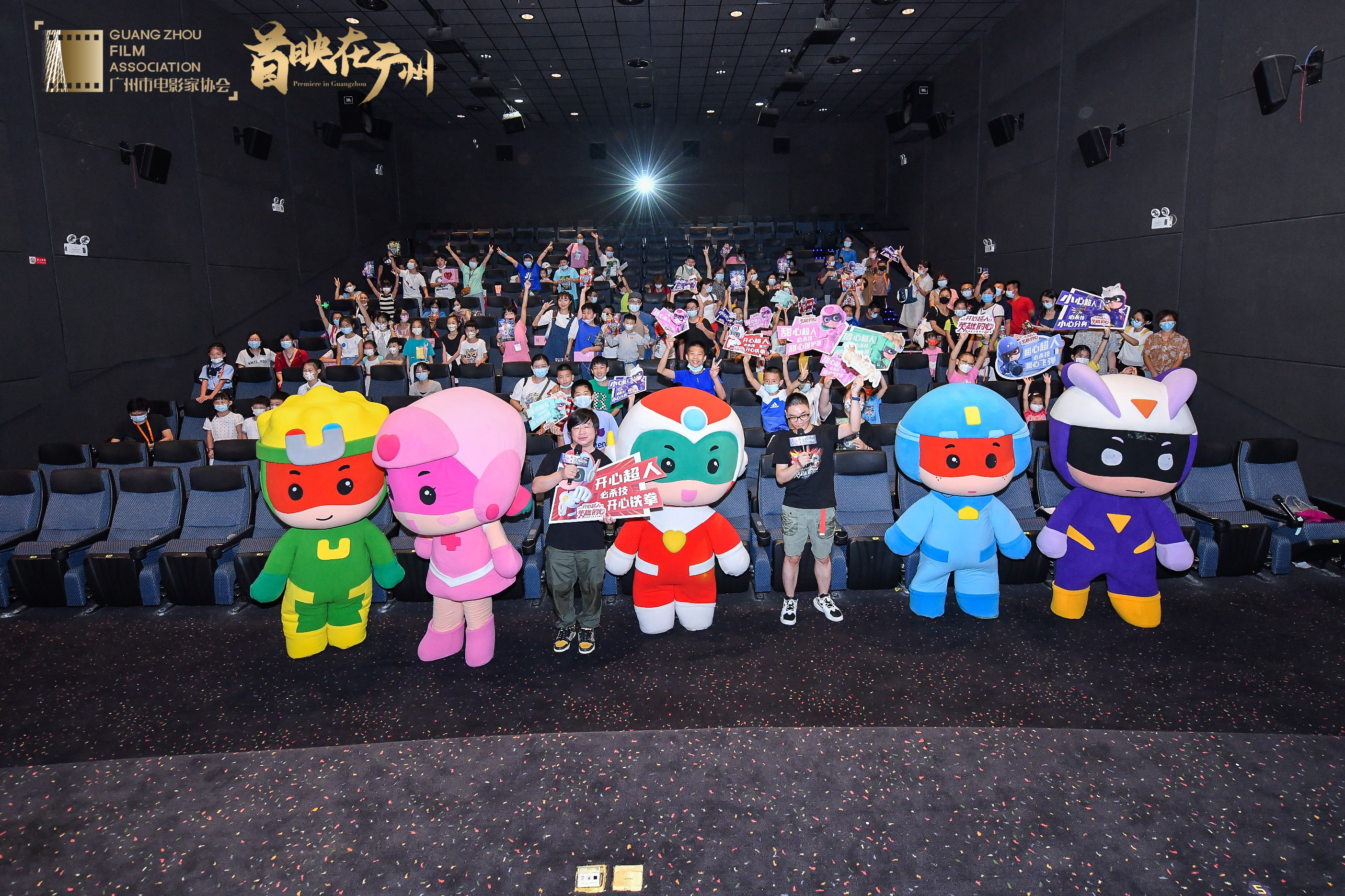 7月16日,“首映在广州”——动画电影《开心超人之英雄的心》首映礼在中影国际影城(广州太阳新天地店)举行。现场,大小朋友一起观影,映后,导演黄伟明携编剧王代旺与开心超人联盟五位超人玩偶现身活动现场,分享制作历程,勾起满满“回忆杀”。影片将于7月22日登陆“暑期档”。