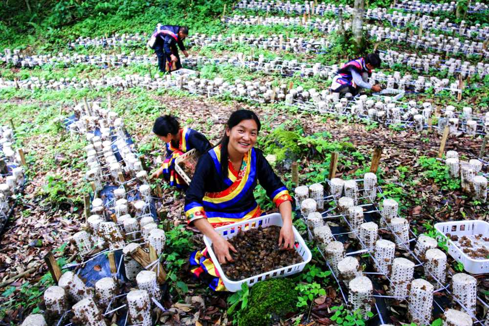 不仅是养殖,在当地援藏干部的帮助下,当地还发展起林下种植业。进入6月,墨脱县迎来雨季,达木村林下食用菌基地迎来了大丰收,村民们背着背篓在山林间采摘蘑菇和木耳,脸上都洋溢着丰收的喜悦。“我们这里气候湿润,日照时间长,并且是砂质土壤,木耳、蘑菇等菌类特别适合在这里生长。”赖鑫说。近年来,在援藏工作队的帮助下,达木村借着地理优势打造高原林下产业,将林下食用菌种植作为带领村民们致富的新门路。