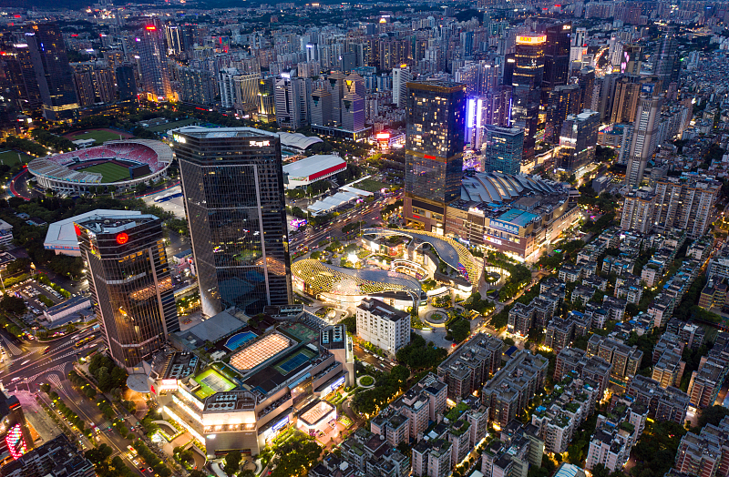佛山市千灯湖片区:千灯湖片区是佛山南海的地标,也是夜游打卡盛地,汇聚多种业态的夜间营业商户,同时用各种科技技术创新的手法展现传统文化。