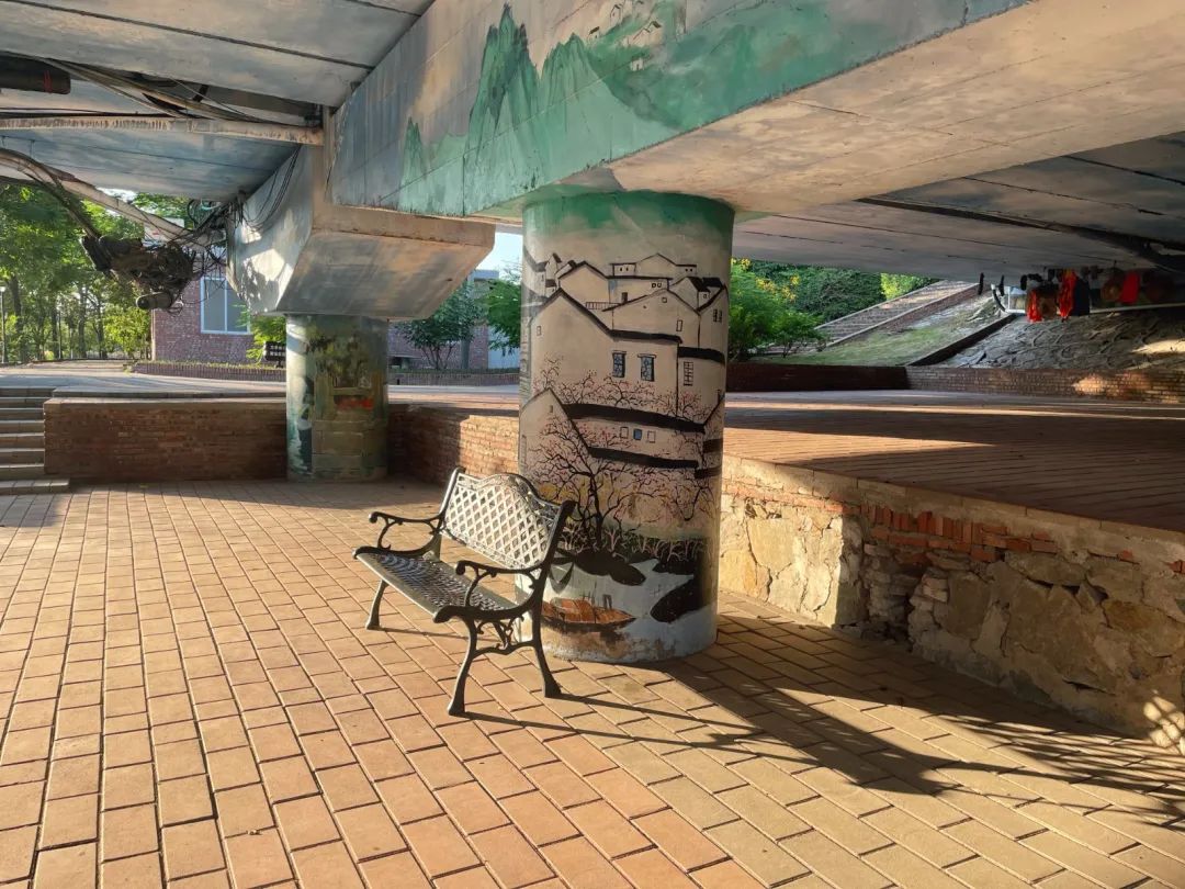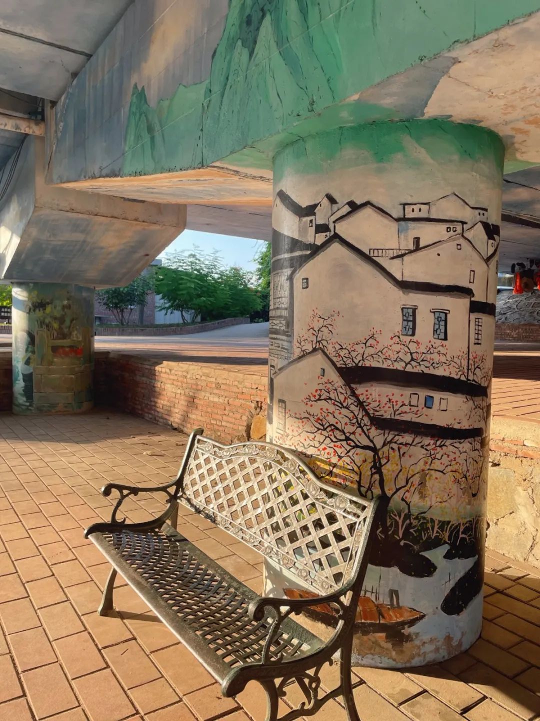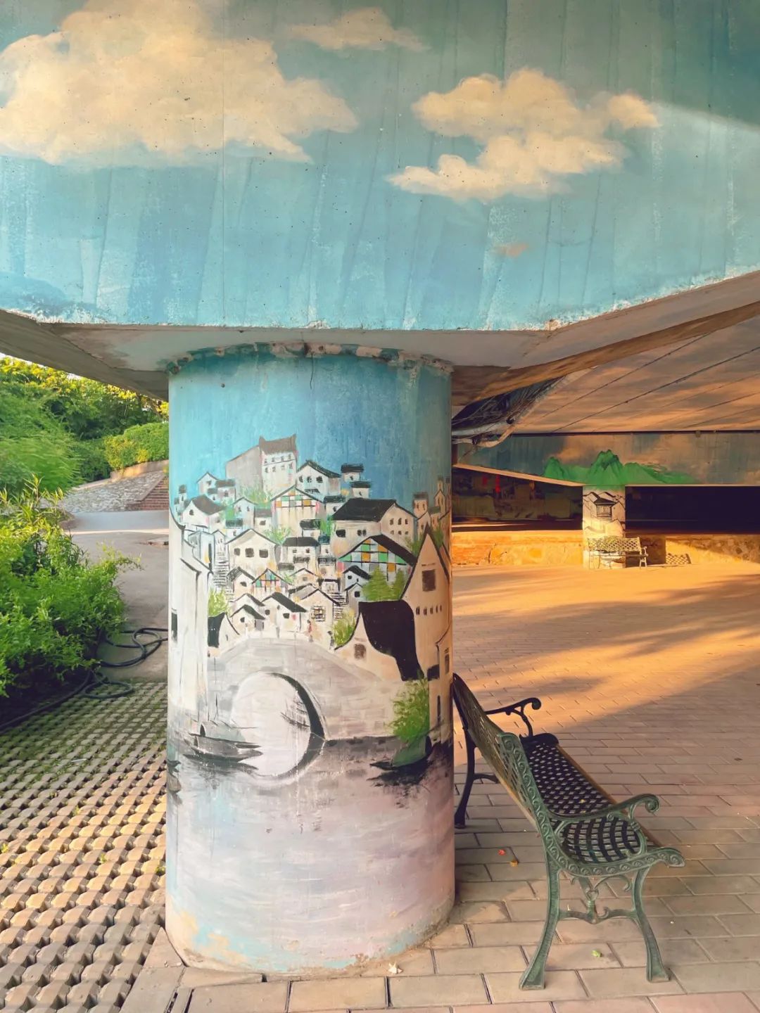 利民的城市公共空间,让市民享受户外的美好。桥底涂鸦元素多以江南水乡为主,小桥、流水、人家,看起来十分有意境。城市需要色彩装饰空间,正如人们需要空间释放压力。