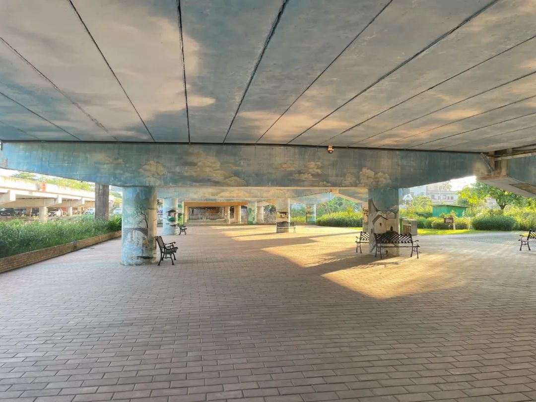 近年来,随着城市化进程的不断加快,桥下空间成了城市中不可忽视的一方宝地。在化龙湿地公园,有一个几百平方米的桥底空间,经过改造,成为街坊一个休闲娱乐的地方。