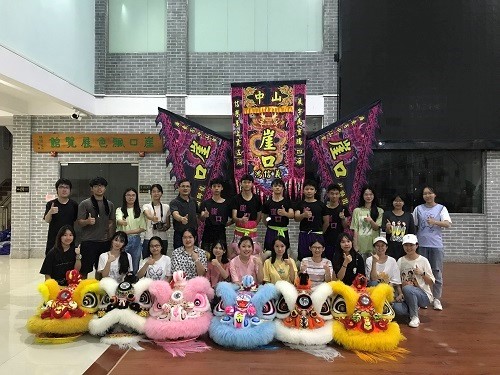 “行山阅海”暑期大学生三下乡实践团与崖口舞狮团合影留念