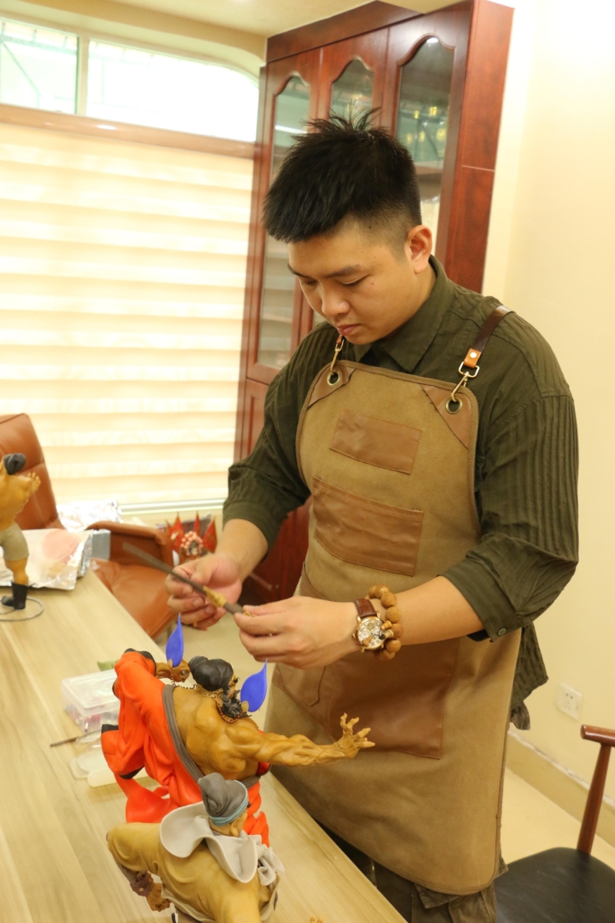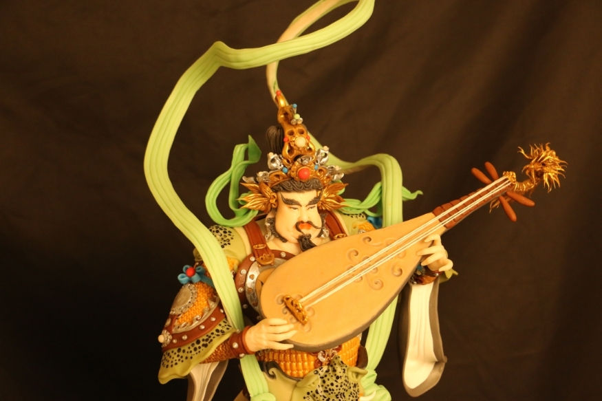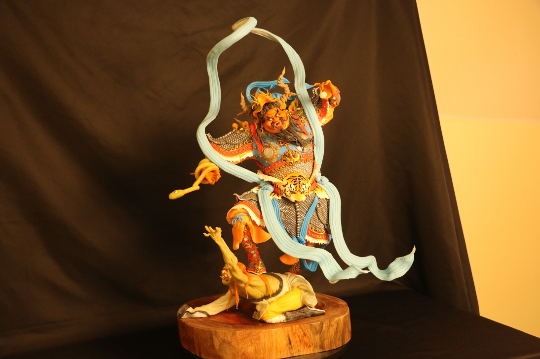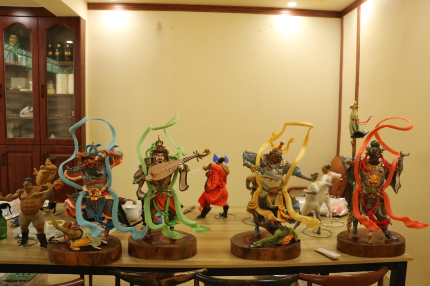 在众多的作品中,李宏天最满意的是花费了2个多月时间才制作出来的四大天王。四大天王细节多,需要花费大量的精力把每个人物神态、造型、服饰等细节处理好,才能突出不同天王的特征。“一边做一边查阅资料。”李宏天说,平常一个作品大概七八天,而这套四大天王花了2个多月。