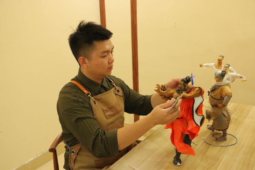 “从小喜欢传统文化,就想通过面塑手艺还原历史人物和神话人物。”李宏天对中华上下五千年非常感兴趣,便将中国的历史人物和神话人物当作创作的对象。