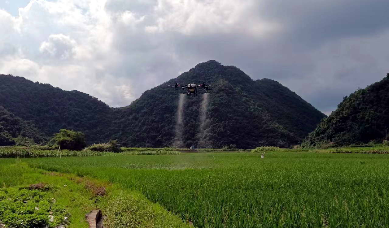 受近期连续降雨影响,乐昌云岩镇种植的水稻生长受到不同程度影响。为确保将灾后水稻种植损失降到最低,乐昌市粤合生产托管服务中心近日到云岩镇开展飞防植保服务,对受灾水稻加强田间管理,追施速效肥,加强病虫害防治等工作。