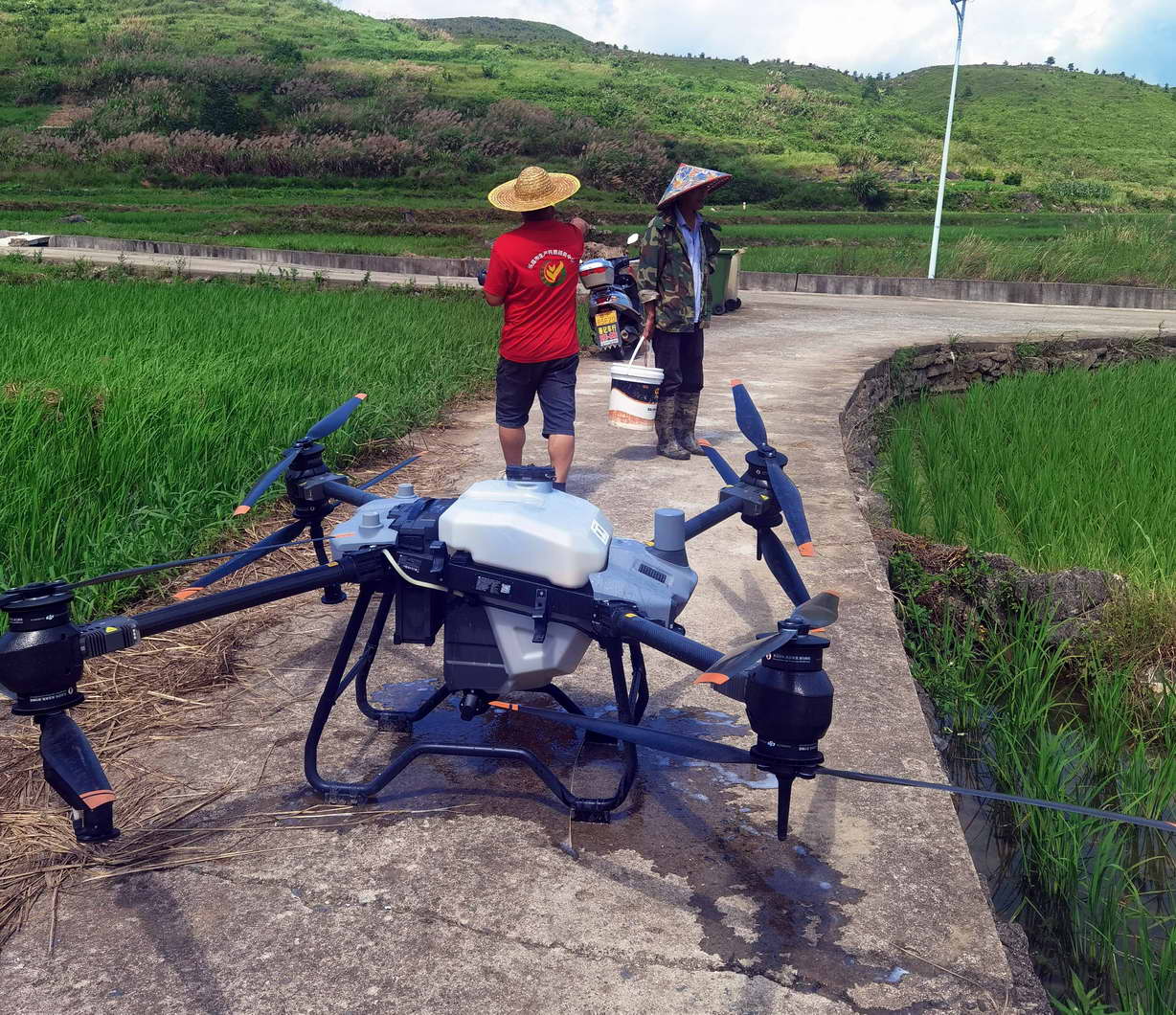 乐昌市粤合生产托管服务中心负责人表示:“无人机飞防除草、杀虫效率高、省时省力,一次可装载40升药水,每次飞行15分钟可完成15亩农田的植保作业,一天可完成200多亩作业,每一棵农作物都能均匀接受药物,保证了用药成效,节约了用药成本,大大提高了农业生产的效率。”