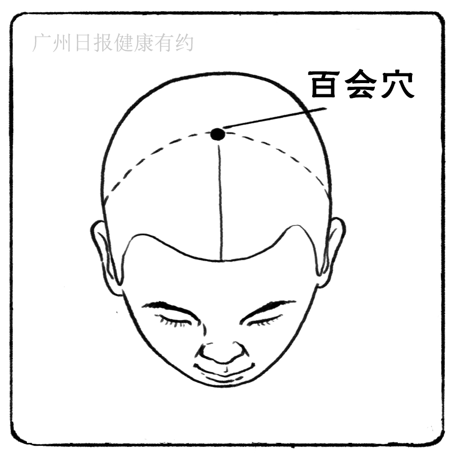 定位:百会穴位于头顶,前发际正中直上5寸处。