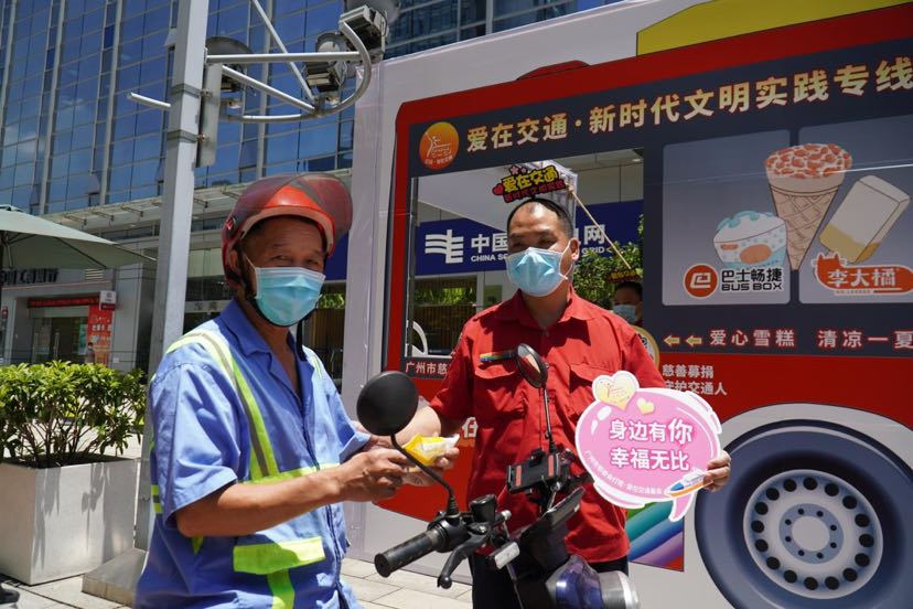 连日来的高温天气,让广州进入炙烤模式,但各行各业的劳动者仍然奔波在烈日下、坚守在岗位上。为了促进全社会了解交通行业、关爱交通行业一线职工,7月22日中午,“爱心雪糕·清凉一夏”爱心志愿服务活动在广州市交通运输局门侧举行。活动通过雪糕义卖的方式筹集善款,为交通行业的一线职工送上清凉。