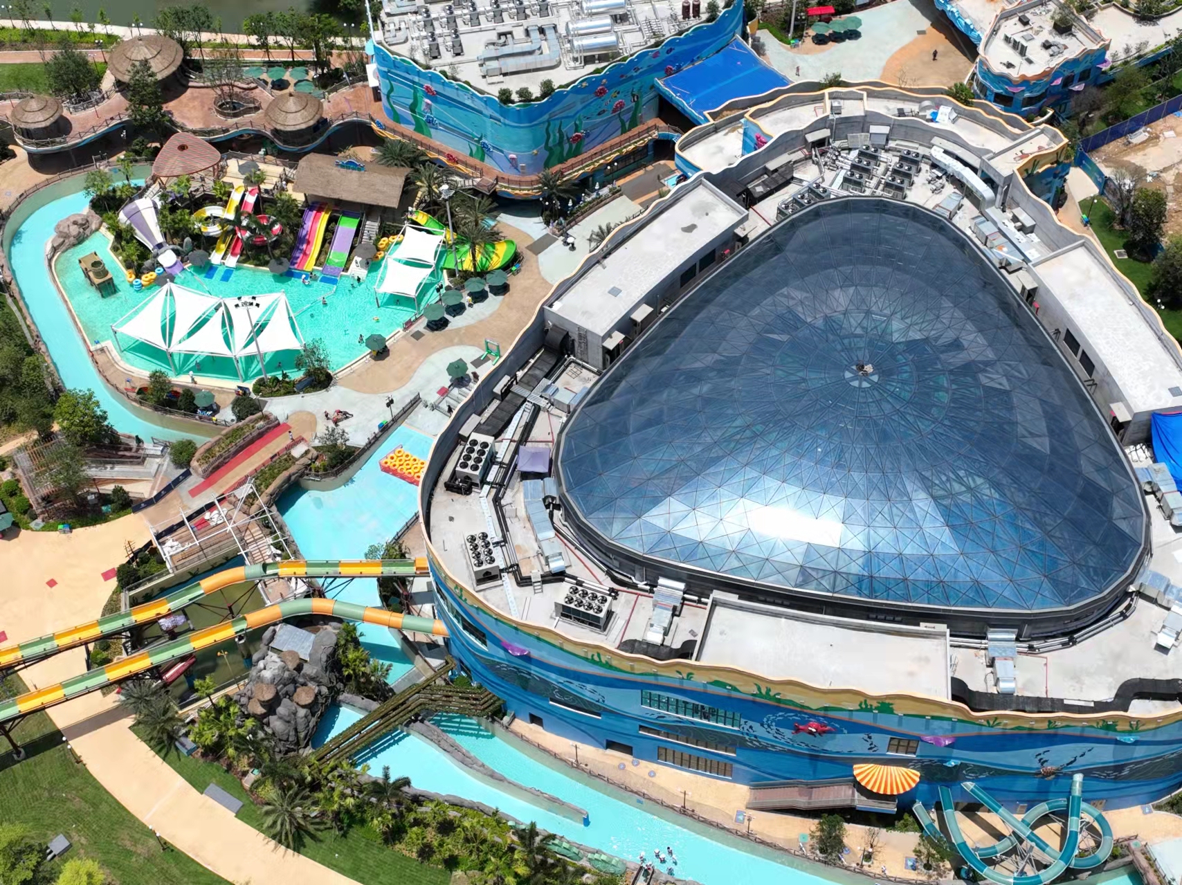 森海集团董事长范毅锋介绍,占地约30万平方米的森林海嬉水乐园以“全龄全时全季”理念打造,由古海森林、神秘海岛、森林温泉、森林树屋、抓鱼摸虾区、天阳湖、乐水一号组成,是主题乐园、文化演艺、餐饮娱乐、休闲住宿于一体的亲水休闲度假天地。记者在现场看到,这个全新的嬉水乐园设计了不少可遮阳的面积,各类大型乔木林立,还有贯穿园区的空中连廊等,可以让游客在园区游玩时避免大量阳光照射,随时躲入一片阴凉之中。