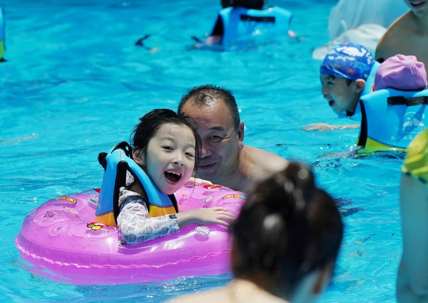 夏日炎炎,孩子们在室内水上乐园开心玩水。