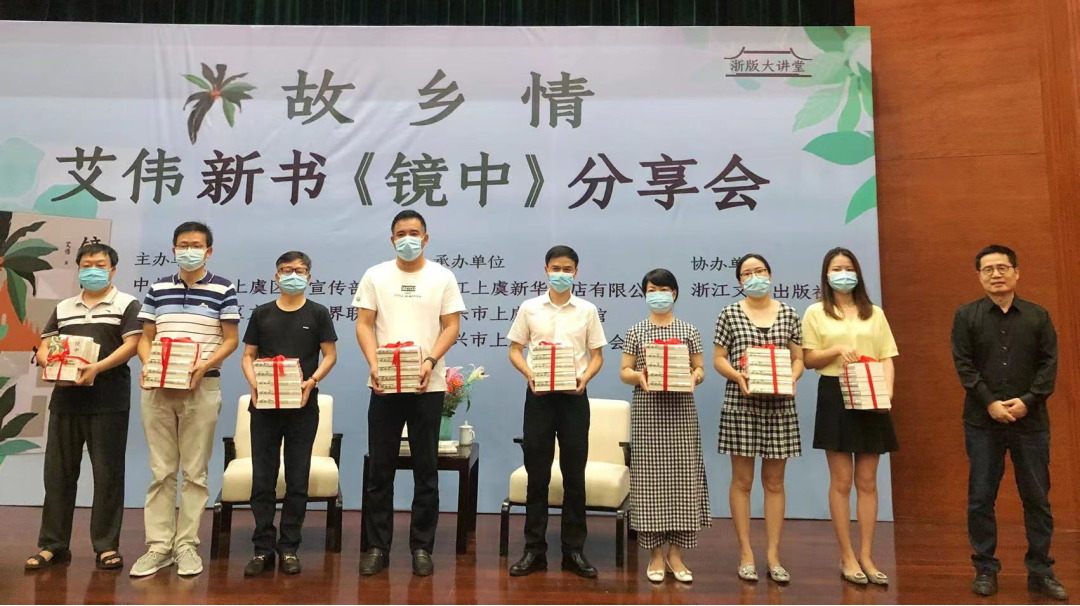 虞籍乡贤、浙江省作家协会主席、杭州市文联主席艾伟回到家乡上虞,围绕小说写作与在座朋友进行分享交流,并对《镜中》一书进行欣赏,与大家签名留念。