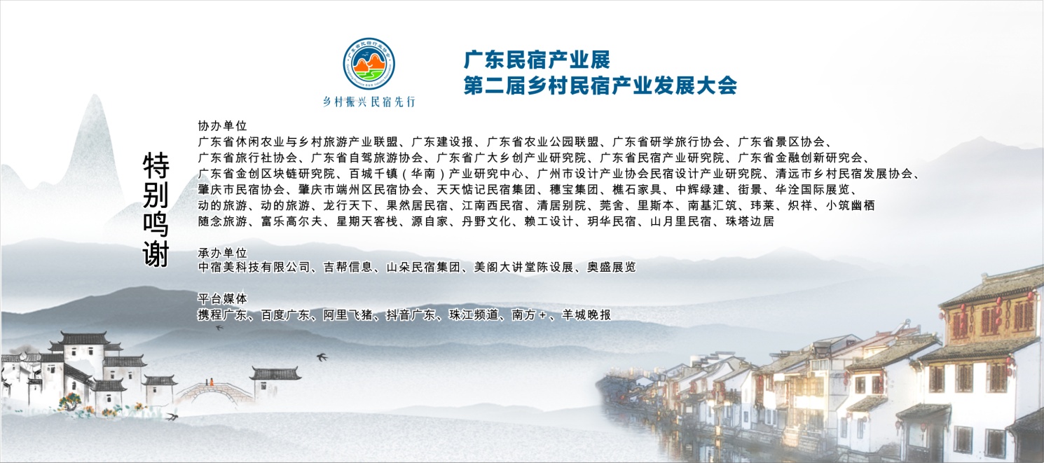 2022年7月17-20日,由广东省农业农村厅作为指导单位,中国乡村发展基金会作为公益支持单位,由中国对外贸易广州展览有限公司和广东省民宿行业协会联合主办, 广东省民宿产业研究院等单位协会,中宿美科技有限公司等单位承办的广东民宿产业展和第二届乡村民宿产业发展大会在广州琶洲展馆顺利召开。