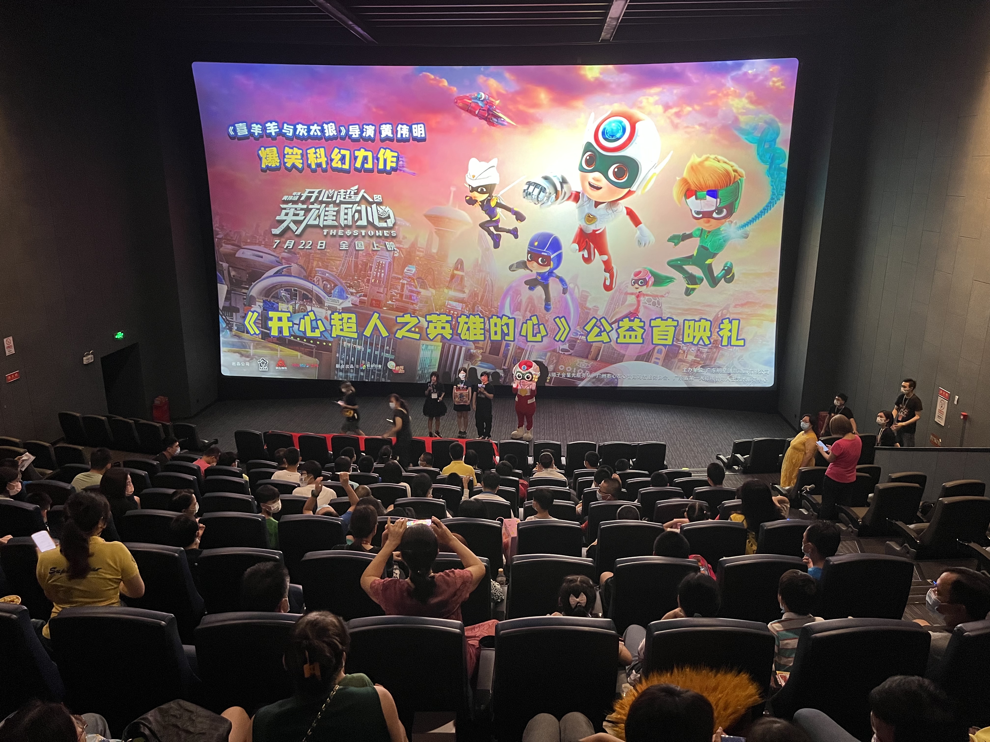 7月22日,由广东明星创意动画有限公司牵手广东狮子会星光服务队、广州市心友心智障碍者服务协会、广东省第一人称残智障人士艺术服务中心组织及开展的电影《开心超人之英雄的心》公益首映礼在广州CGV影城(北京路店)举办。