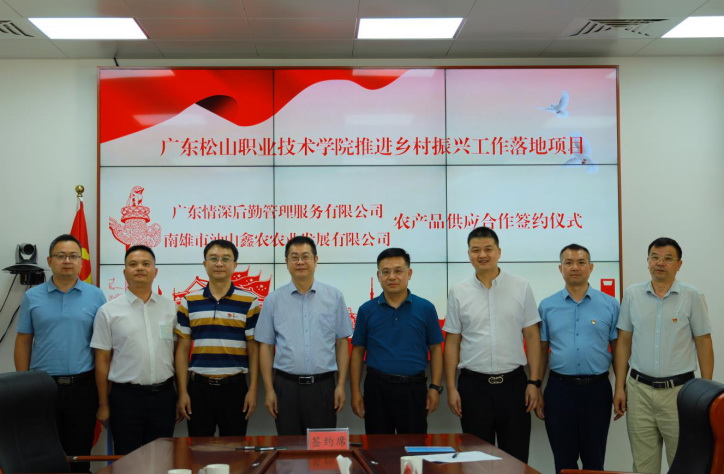 当天,广东松山职业技术学院推动乡村振兴工作落地项目——广东情深后勤管理服务有限公司与南雄市油山鑫农农业发展有限公司“农产品购销合作”签约落地老区油山镇。在松山学院与油山镇党委政府的共同见证下,双方签署了乡村振兴农产品供应合作协议。